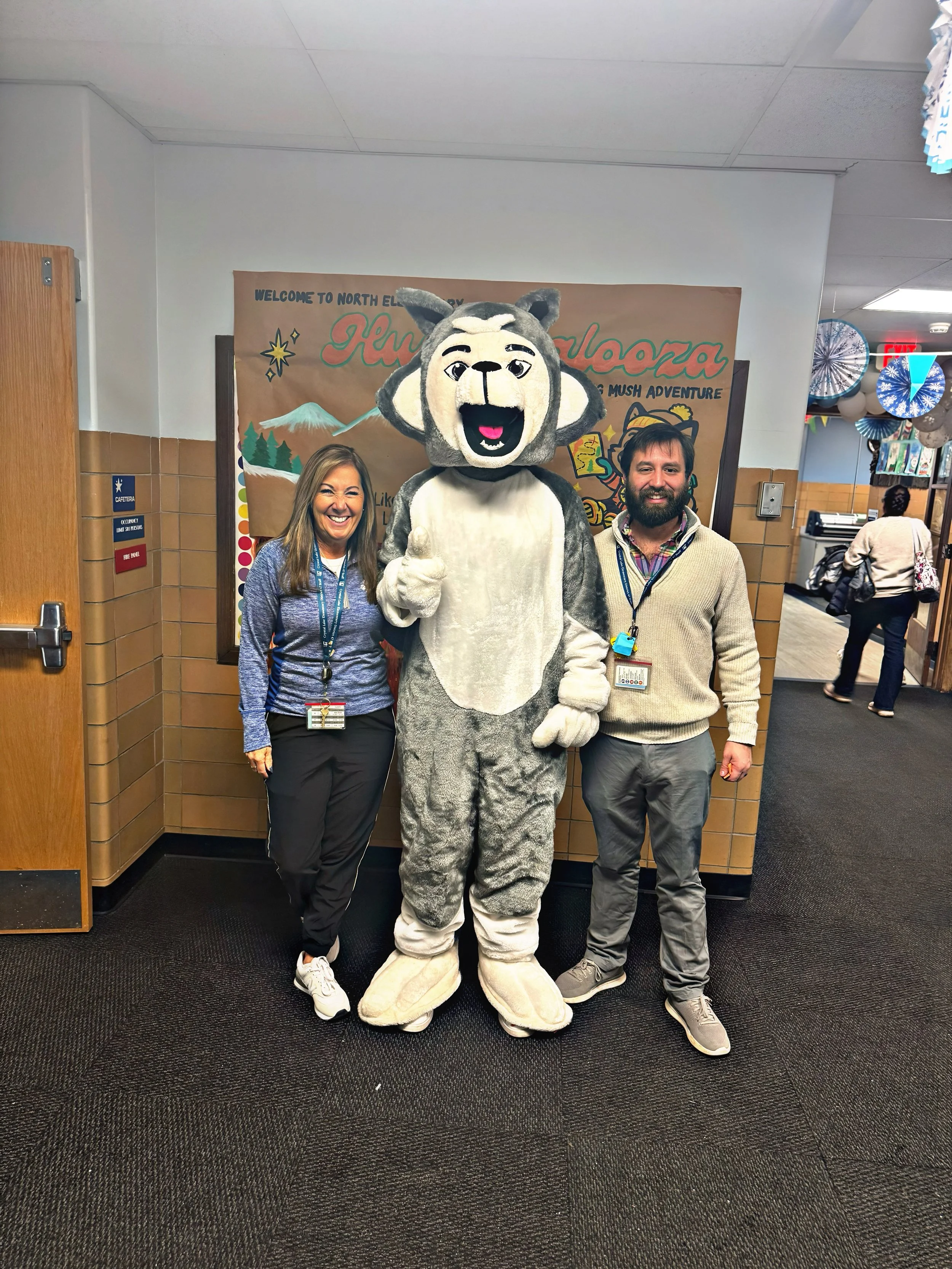 This year, Huskypalooza featured Sparky’s Dog Mush Adventure, an interactive journey through the school where students explored activity stations, played games, collected stamps, and learned about teamwork and the life of a husky sled dog. Families enjoyed bounce houses, donuts, indoor games, a glow dance party, raffle baskets, and space to relax and connect throughout the building.